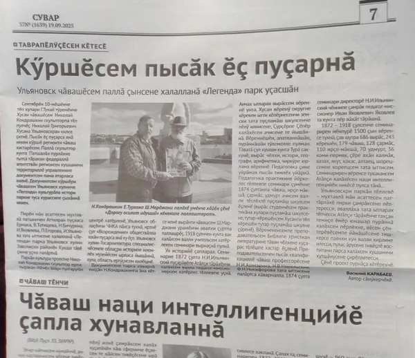 Это новое веяние горячо поддерживается фондом имени К. Иванова, руководимый доктором исторических наук В. Ивановым. Фонд провел тайную сочувственную конференцию в Казани в память о падении Казанского ханства. Священный холм в г. Билярске в тихую полностью переделан на исламский лад. Монументально-декоративная стелла, выполненная профессиональным мастером из мрамора, до сих пор лежит не установленной на место, более того, вероломно под руководством того же фонда К. Иванова на место мраморной стеллы, достойно отражающей духовную культуру чувашского народа, при помощи людей с рынка, называющих себя суварами, установили бессмысленный столб скорбезной формы. Это все понятно, — дали задание, выполняют; деньги не пахнут. А вот позиция газеты ЧНК «Чӑваш тӗнчи» удивляет своей безпринципностью, которая из номера в номер этот подлый акт уничтожения чувашской культуры подает как за некое благое дело.